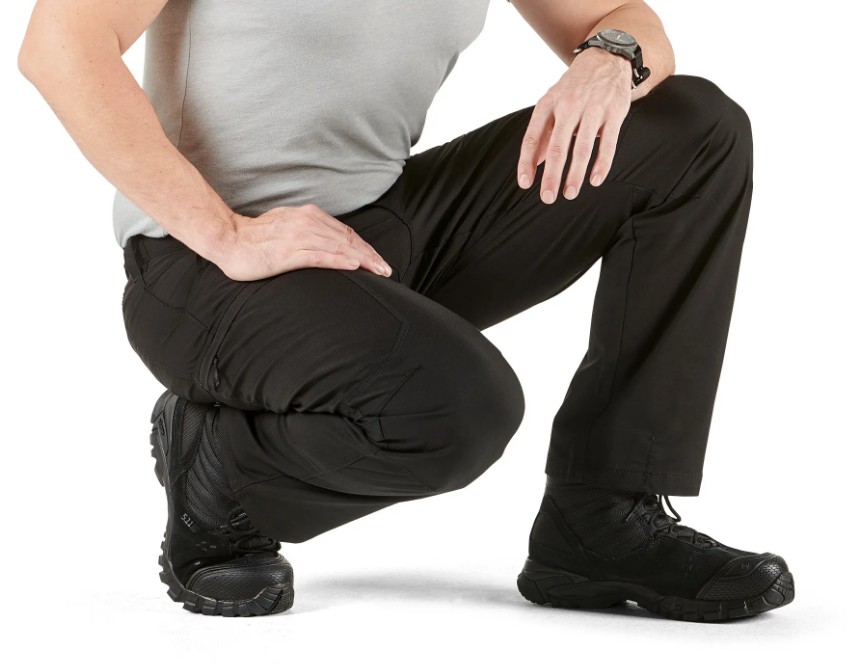 На поясе есть два скрытых кармана: передний продольный для металлических и гибких наручников и задний для скрытый для ключей. В поясной части встроен растягивающийся материал для компенсации при приседании, 7 усиленных шлевок, в том числе для широких ремней.
