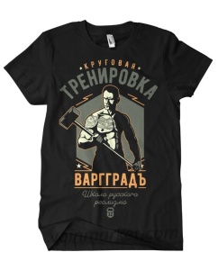 Спортивная футболка из коллекции «Бойцовская артель». Строгий чёрный цвет, дышащая ткань, вытравной принт посвященный круговой тренировке.