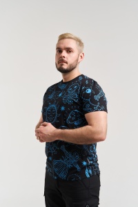 Футболка из кулирной глади (94% хлопка, 6% лайкры) с вытравным паттерном «Ведьмин круг».