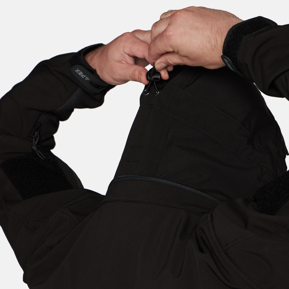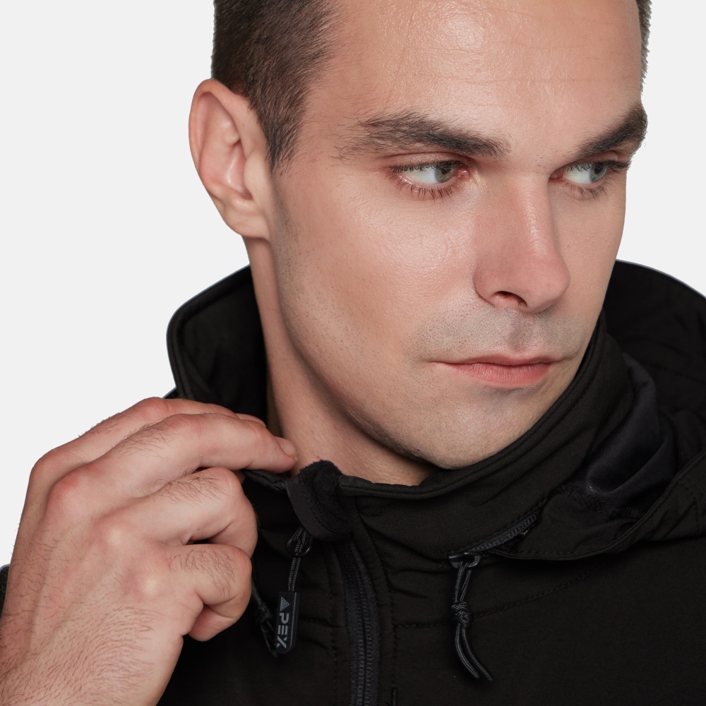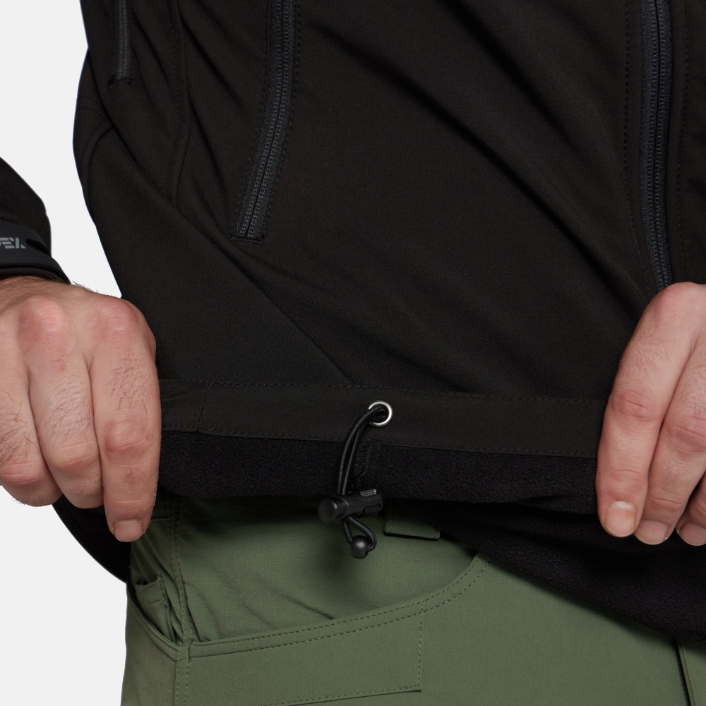 Снаружи куртка останавливает ветер, воду и грязь, выводя при этом излишнюю влагу наружу, а в это же время легкая флисовая подкладка хорошо греет. Складной капюшон можно убрать в воротник, его можно легко отрегулировать с помощью утяжек в карманах на груди. Капюшон надежно защитит голову от ветра и воды. Удобное расположение карманов обеспечит доступ к ним в любом положении. Локти усилены для защиты куртки от преждевременного износа в этих зонах. На предплечьях имеются панели Velcro.