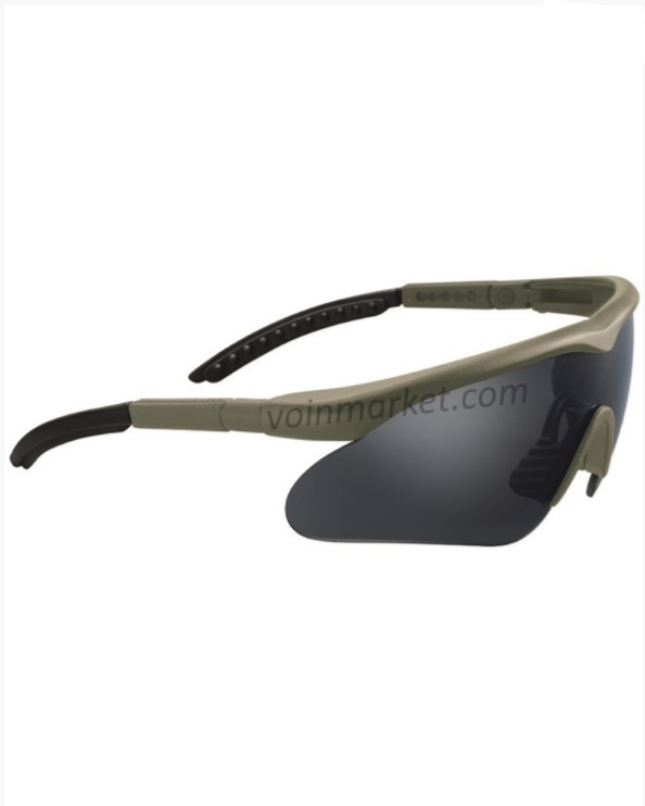 Многофункциональные очки Swiss Eye Raptor объединяют в себе противоосколочную и ультрафиолетовую защиту. В комплект поставки включены 3 сменные линзы бесцветного, черного, оранжевого цветов, а также чехол из микрофазы, который может быть использован в качестве салфетки.