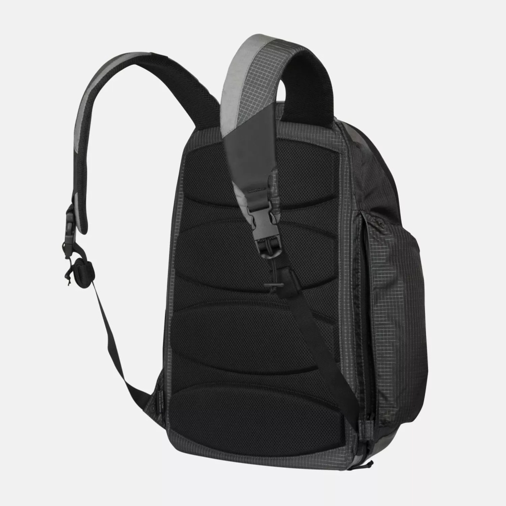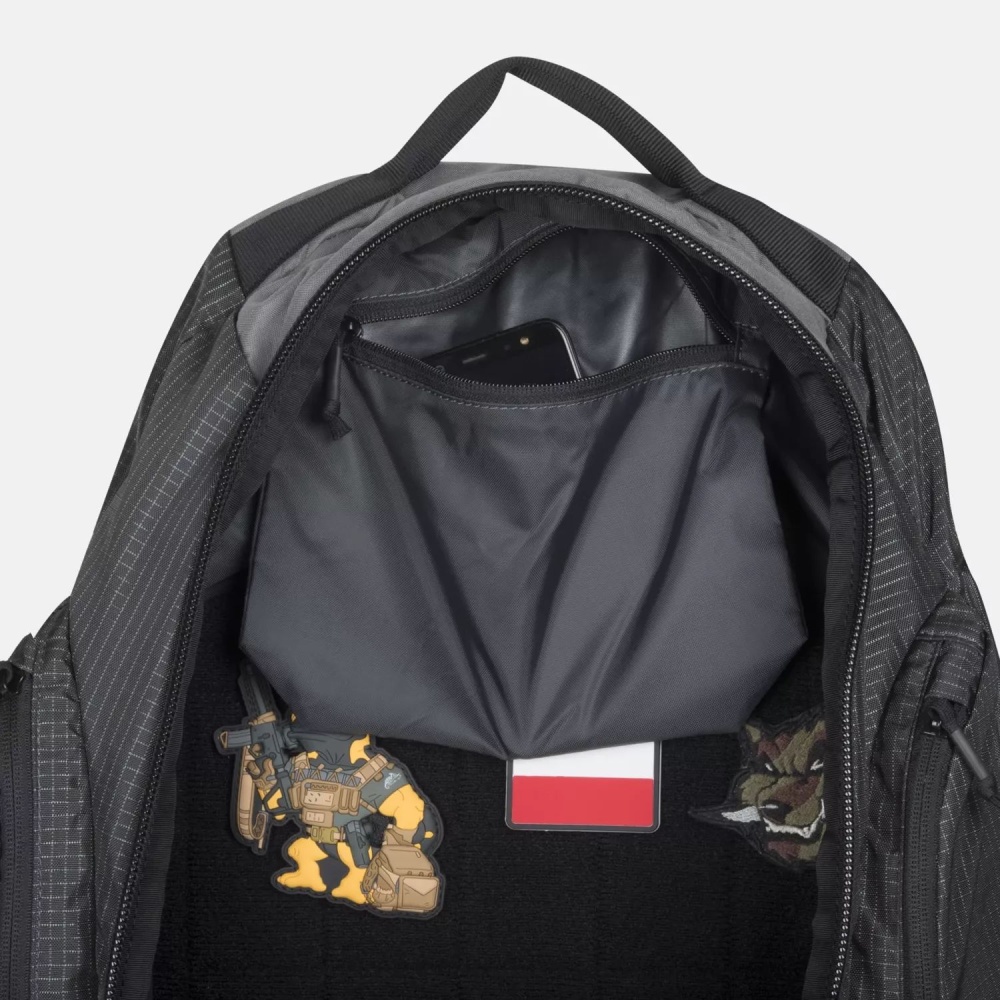 Оборудован специальным отделением с быстрым доступом, для скрытого ношения короткоствольного оружия. Снаружи он выглядит как обычный гражданский рюкзак, который может вместить все ваши вещи, небольшой ноутбук и т. д. В комплекте нет никаких дополнительных лямок MOLLE/ PALS, петлевых панелей. Внутренняя часть основного кармана покрыта мягкой велюровой тканью, совместимой с системой Versatile Insert System для персонализации.