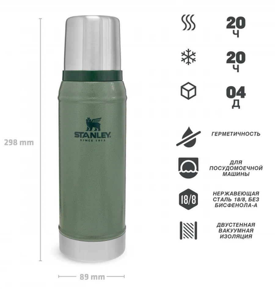 * Корпус и внутренняя колба - из нержавеющей стали 18/8;